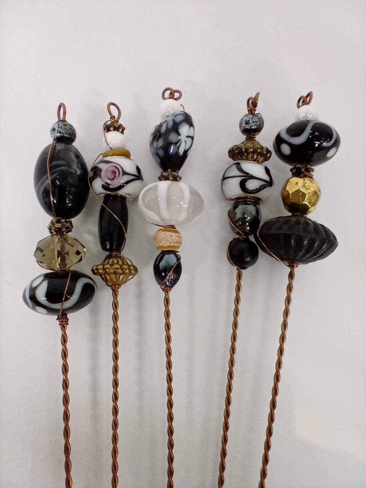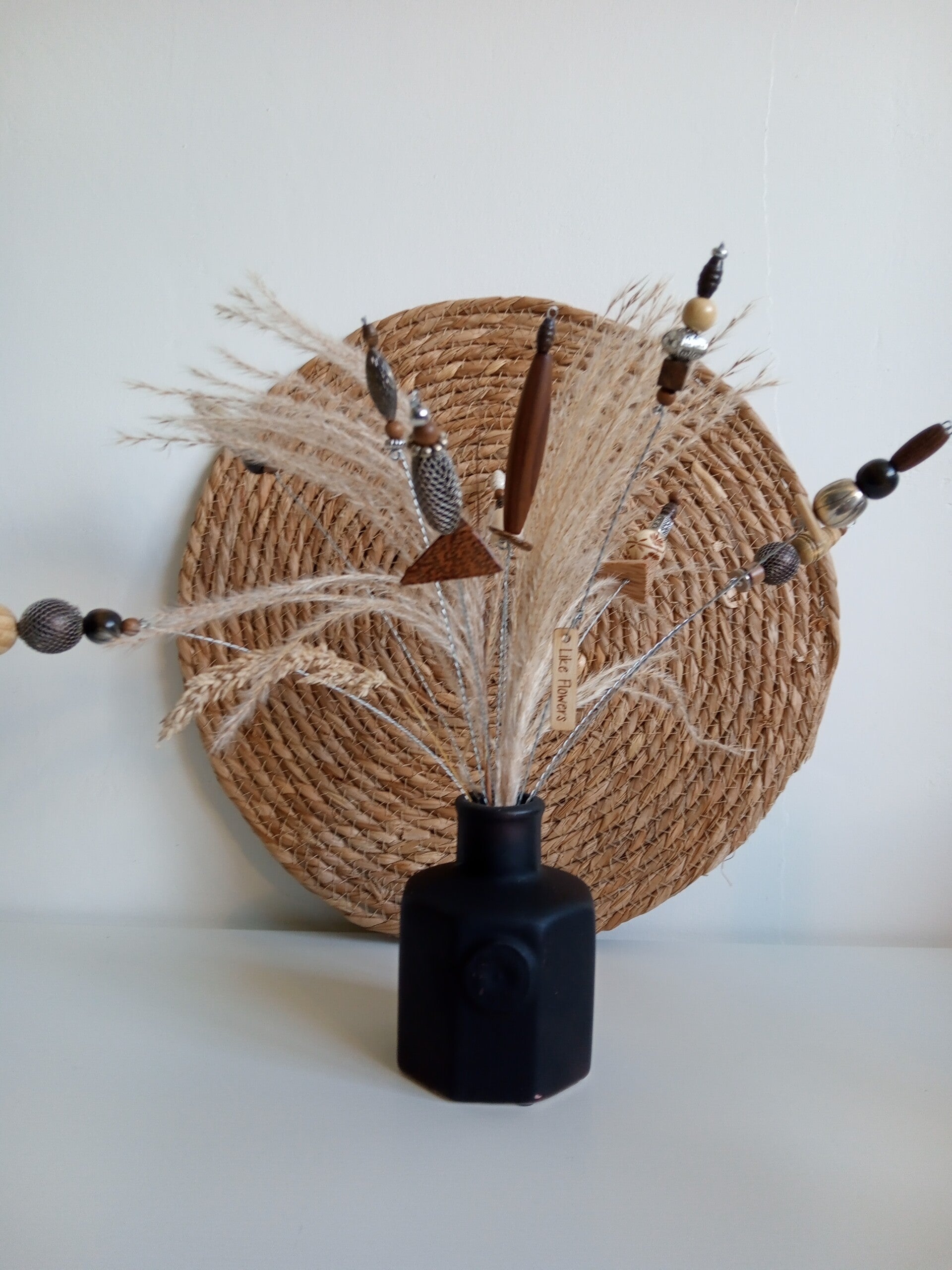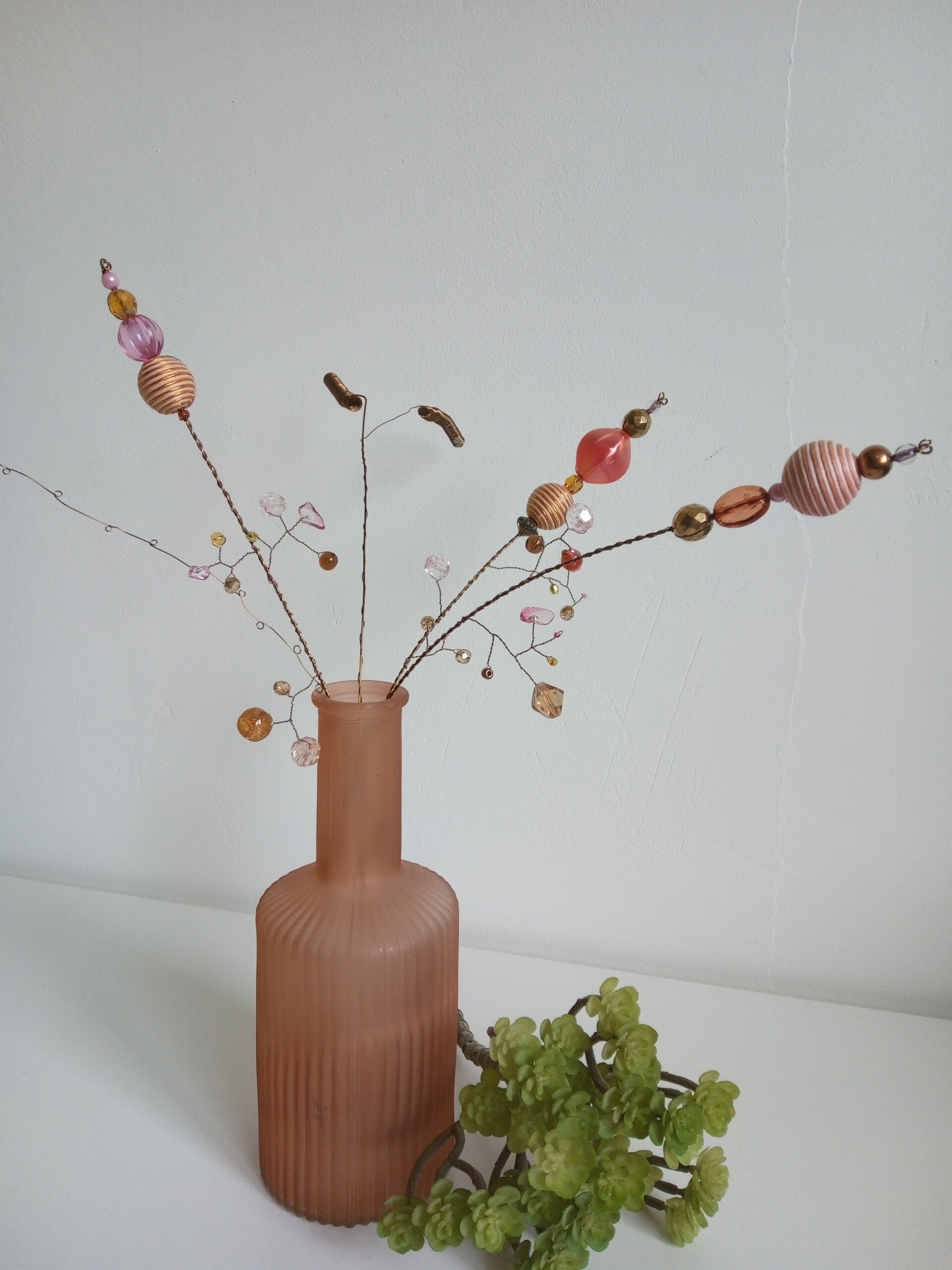 Maak zelf 3 mooie bloemtakjes van kralen op metaaldraad in de kleuren naar keuze. De bloemtakken kun je plaatsen tussen geurstokjes om zo de saaie zwarte parfumsticks een beetje op te fleuren. Natuurlijk staan ze ook op zichzelf al decoratief in een leuk vaasje.